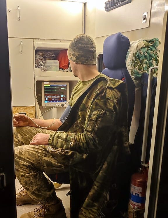 The medic in this photo is using the patient monitor you helped provide to an ambulance crew serving on the northeastern front of Ukraine. This team responds to everything from bombings to heart attacks to childbirth in a densely populated frontline region.